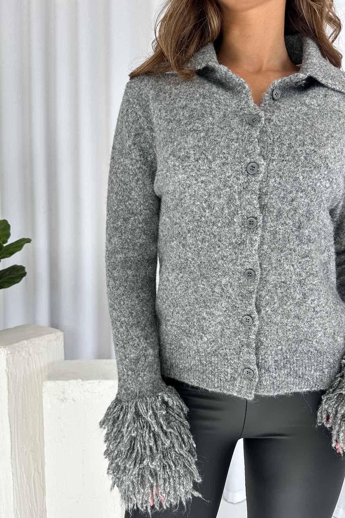 Minimal ve zamansız tasarımıyla öne çıkan Kolları Püsküllü Kadın Yumuşak Hırka - Gri, gri tonuyla gardırobunuzun anahtar parçalarından olur.