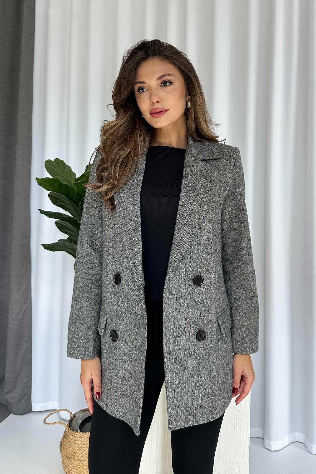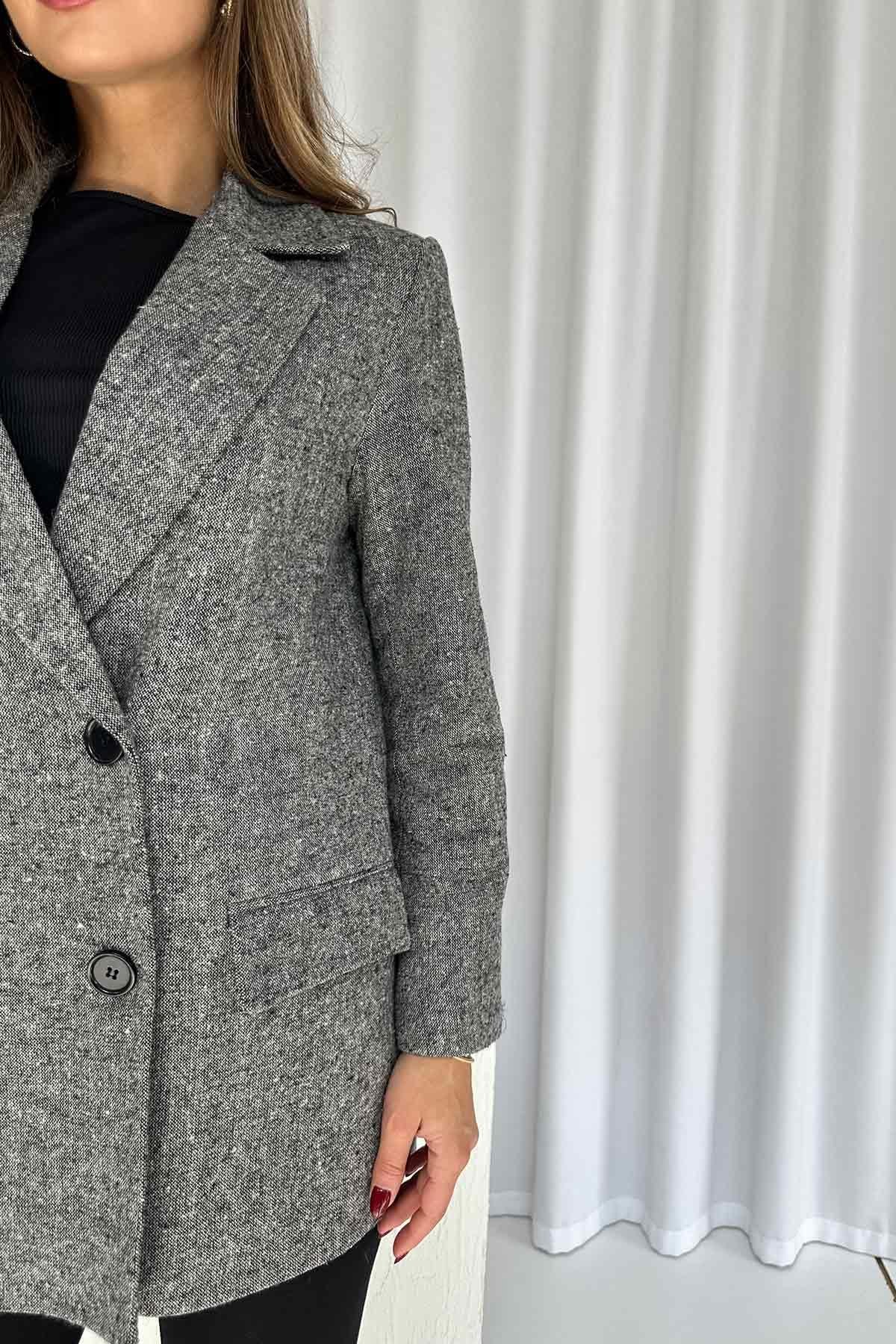 Günlük konforu şık bir duruşla birleştiren Omzu Vatkalı Blazer Kadın Ceket - Gri, gri tonuyla kombinlerinize eşlik eder.
