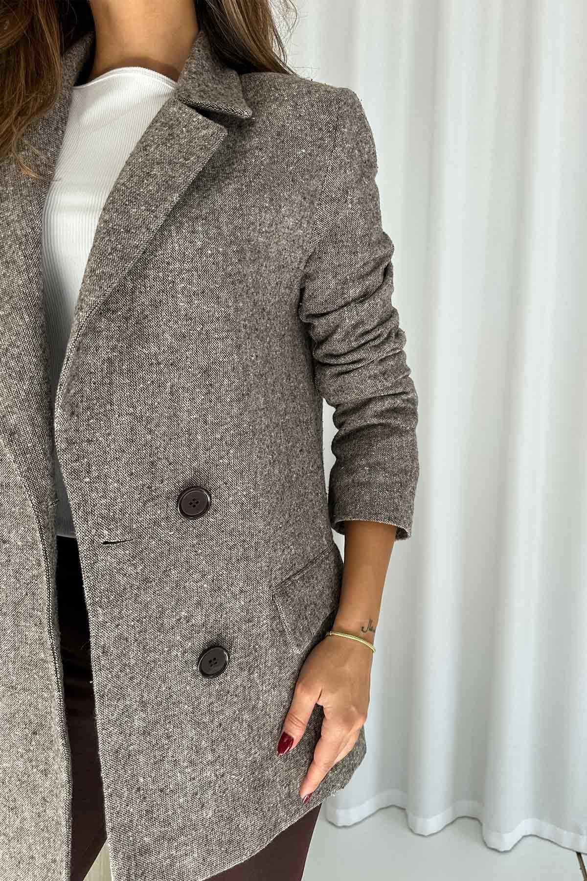Günlük konforu şık bir duruşla birleştiren Omzu Vatkalı Blazer Kadın Ceket - Kahverengi, kahverengi tonuyla kombinlerinize eşlik eder.