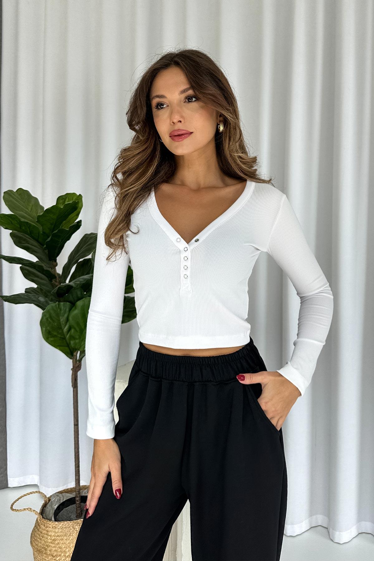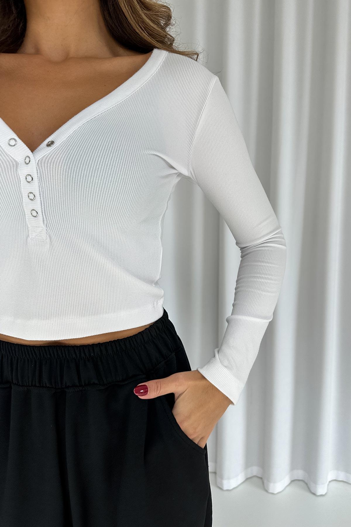Minimal ve zamansız tasarımıyla öne çıkan Önü Çıtçıtlı Uzun Kol Kaşkorse Body - Beyaz, saf beyazın tazeliğiyle gardırobunuzun anahtar parçalarından olur.