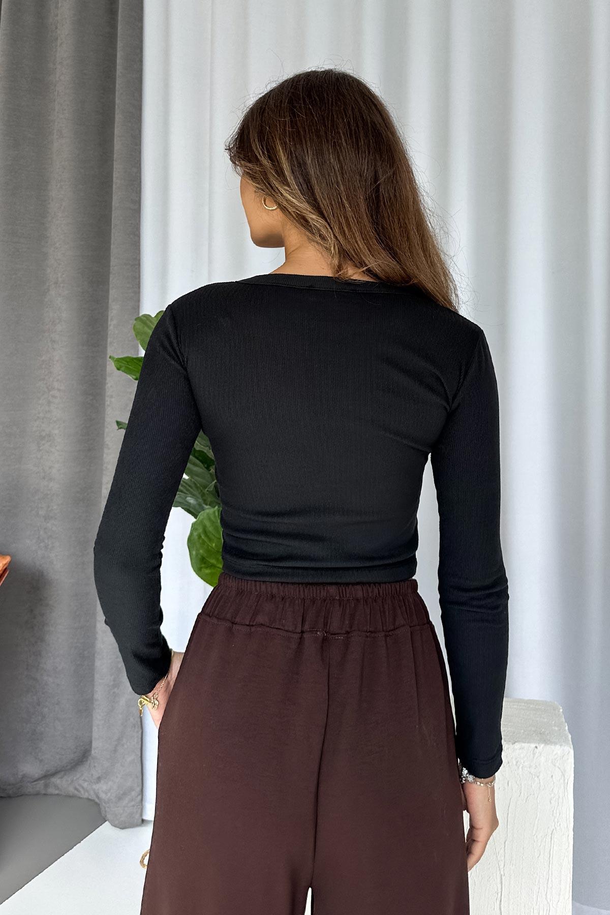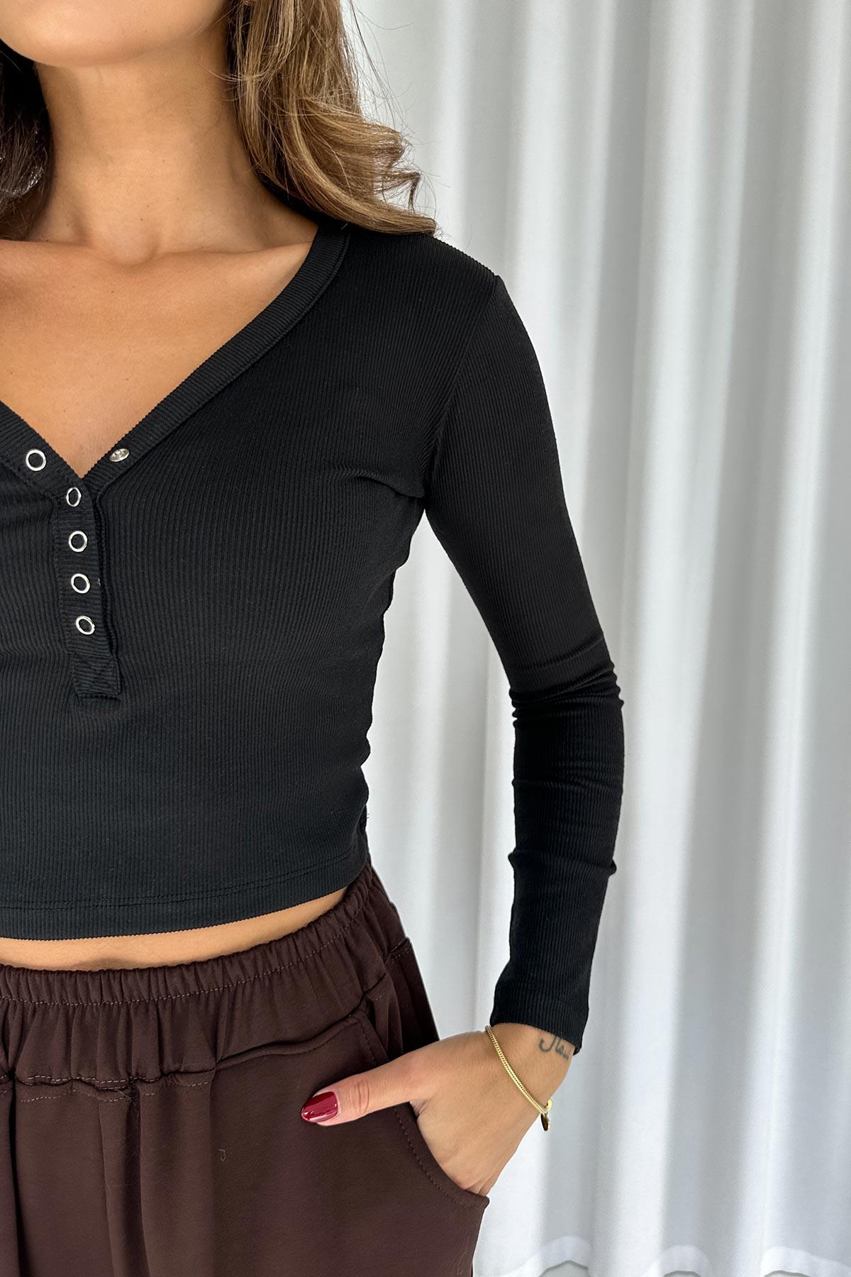 Minimal ve zamansız tasarımıyla öne çıkan Önü Çıtçıtlı Uzun Kol Kaşkorse Body - Siyah, saf beyazın tazeliğiyle gardırobunuzun anahtar parçalarından olur.