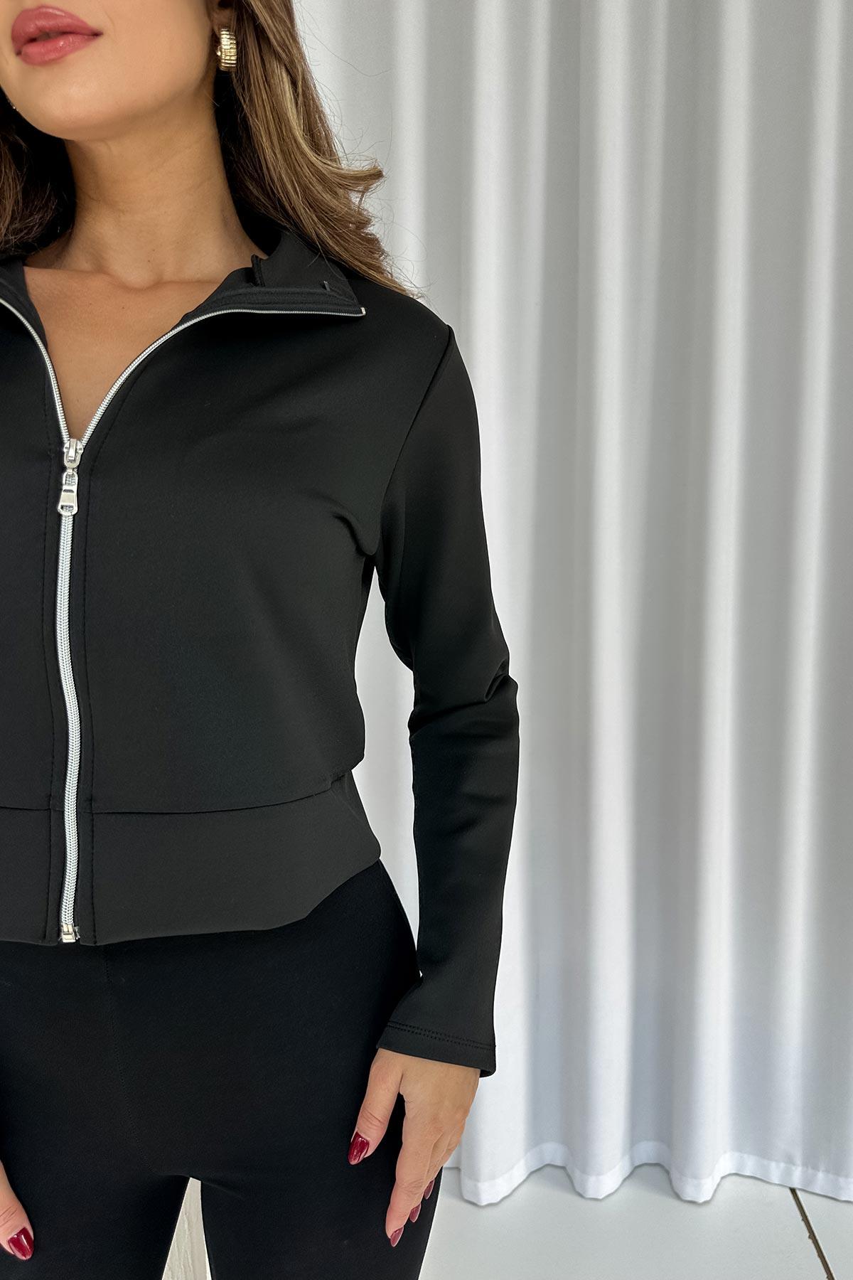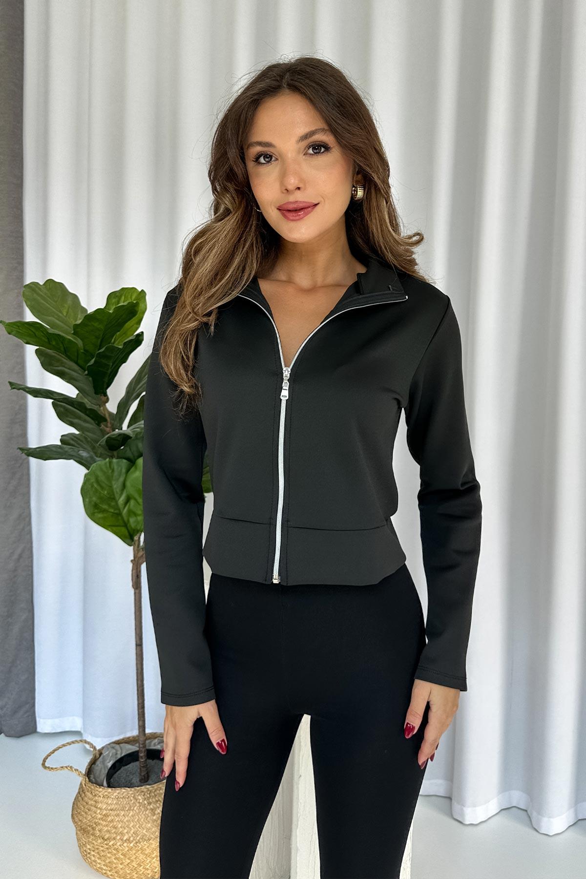 Scuba Kumaş Fermuarlı Ceket - Siyah (3M-3620)
