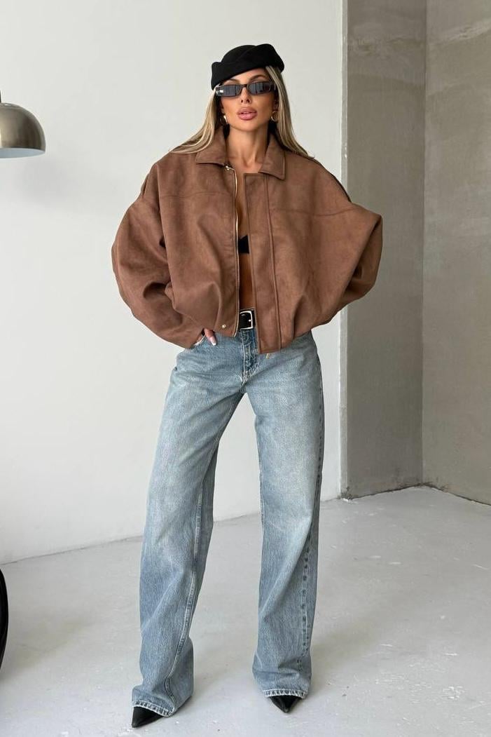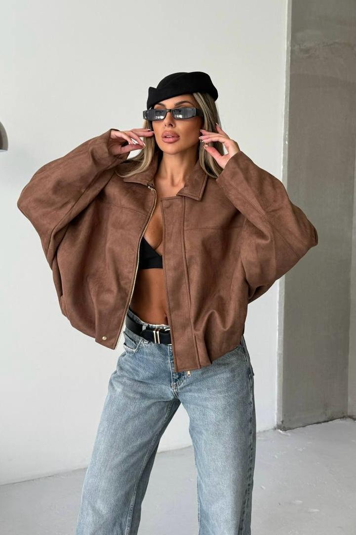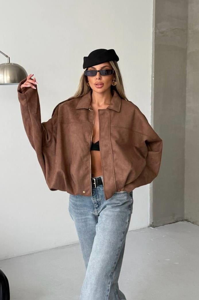 Süet Kısa Kadın Ceket - Kahverengi (3M-3627)