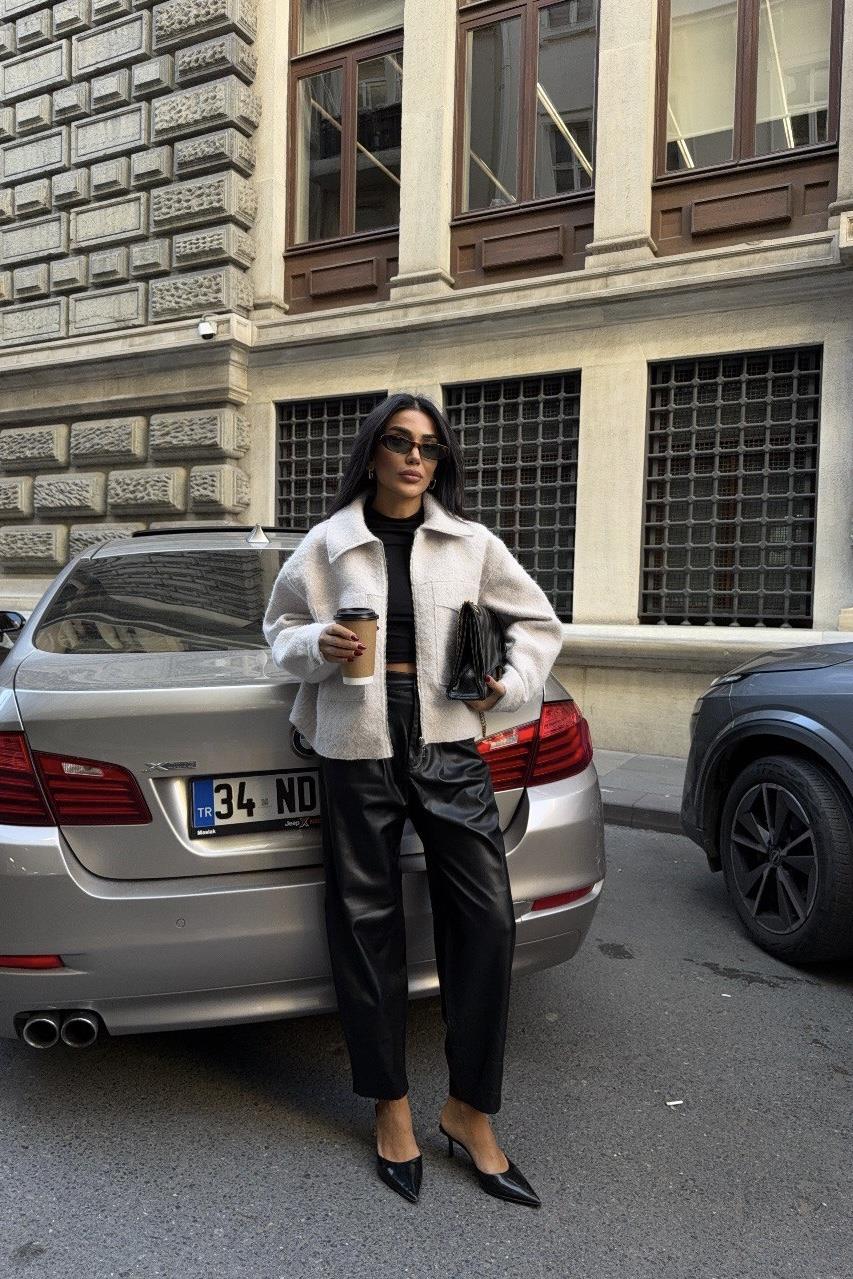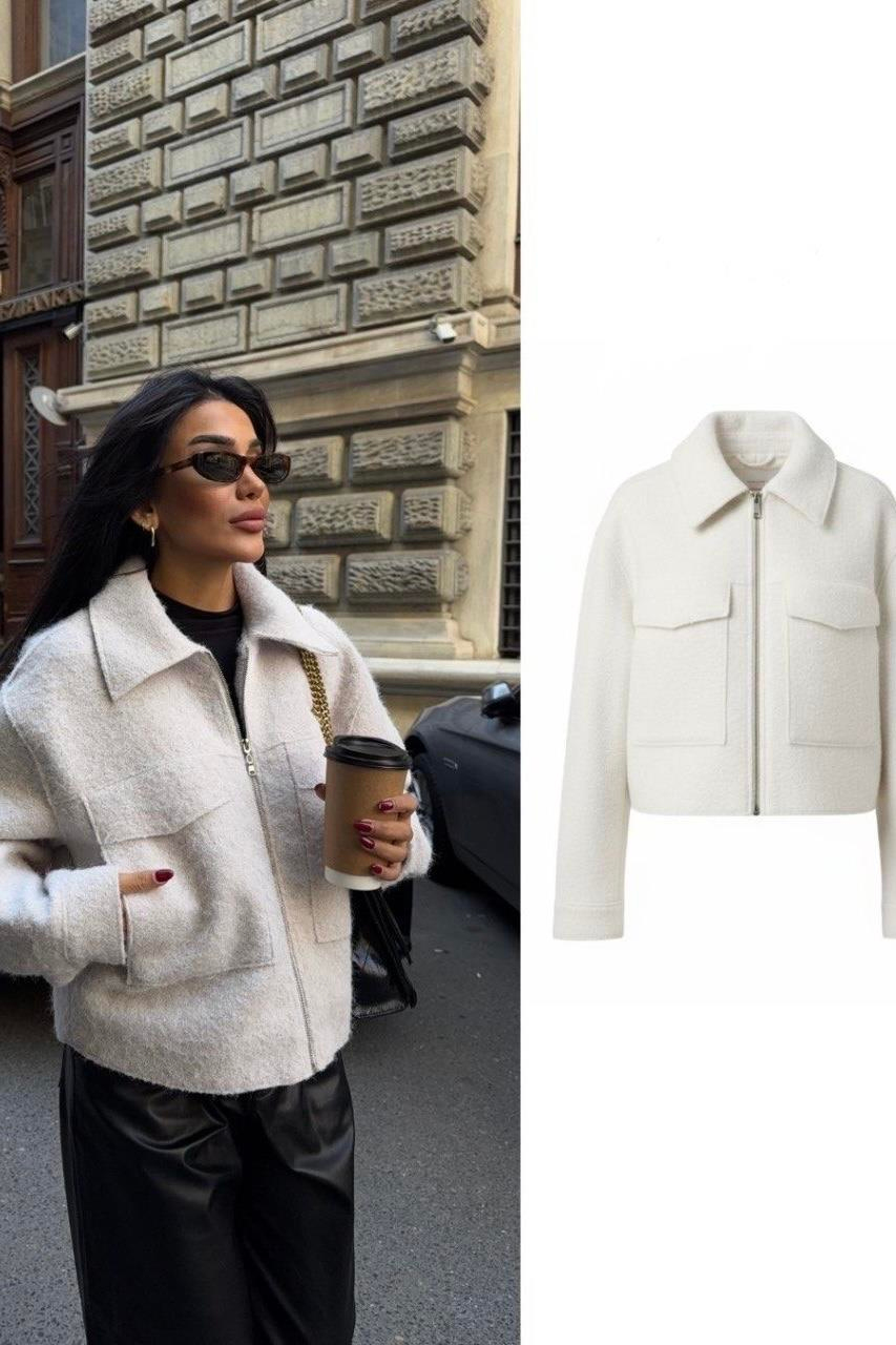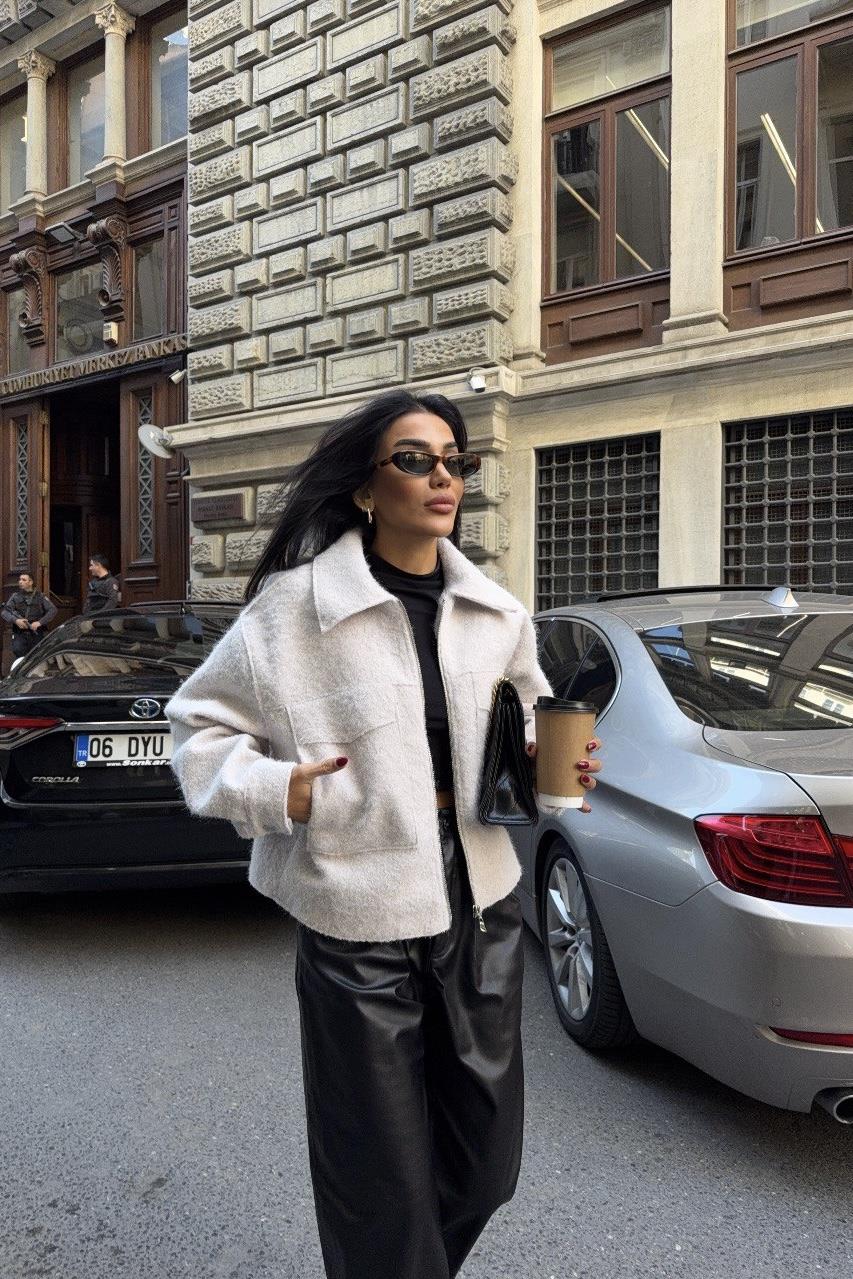 Yama Cepli Bukle Kadın Ceket - Beyaz (3M-3629)