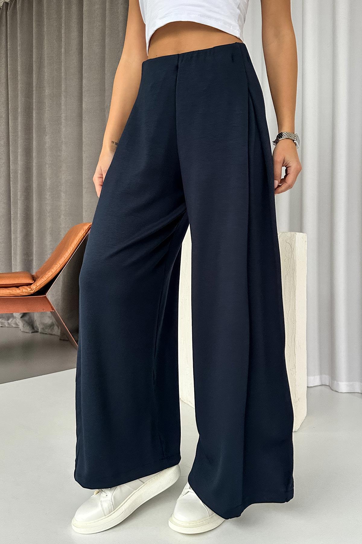 Yan Pileli Modal Palazzo Pantolon - Lacivert (3M-3654)