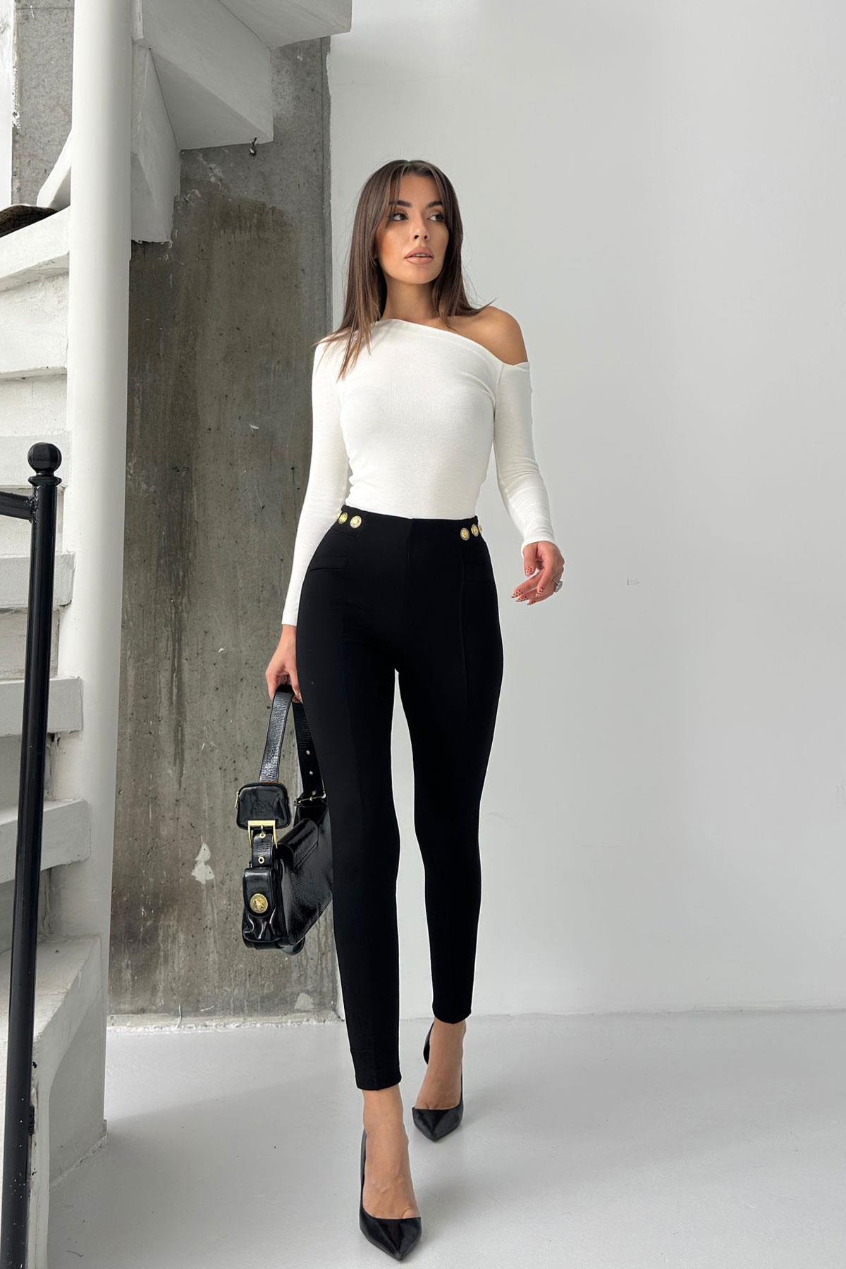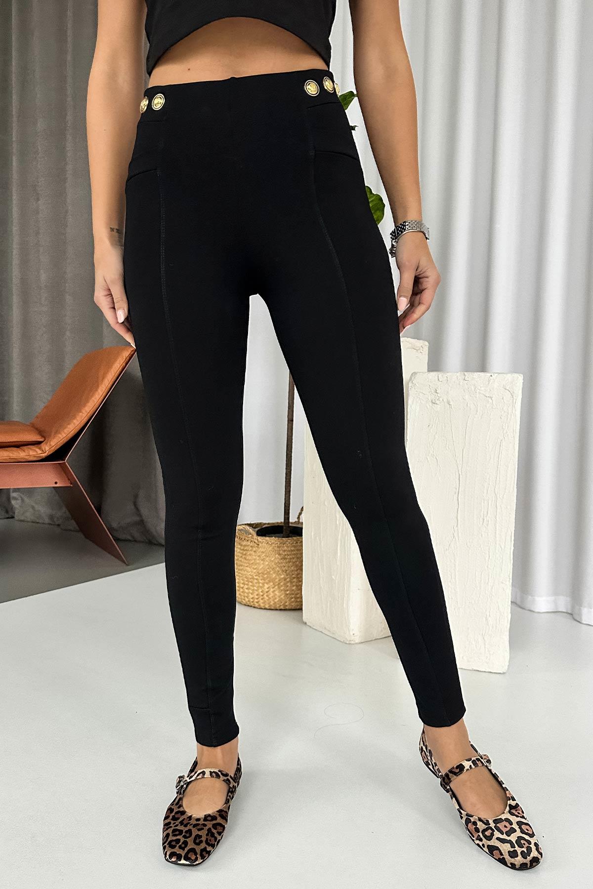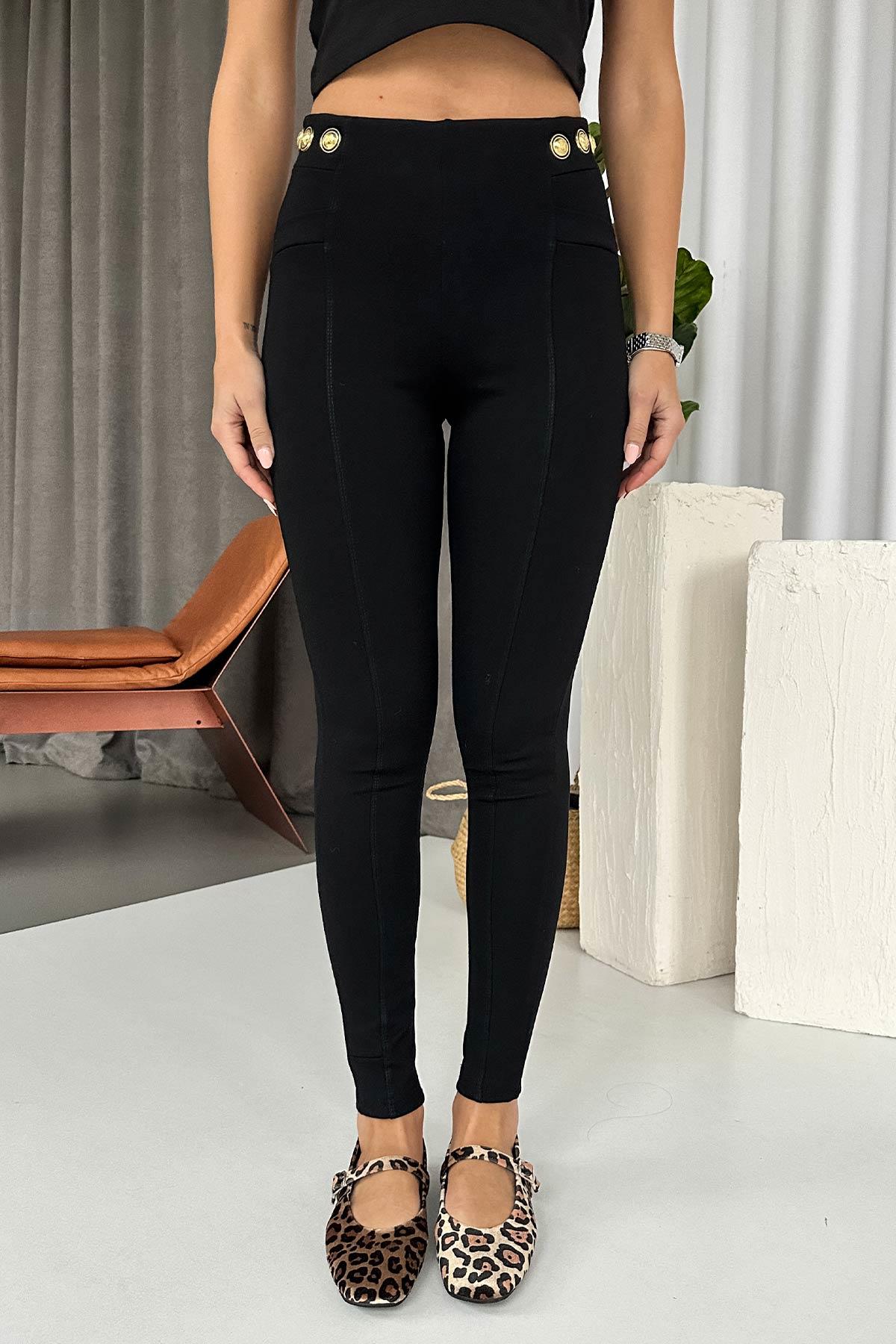 Yüksek Bel Dar Paça Süs Cepli Kadın Tayt - Siyah (3M-3647)