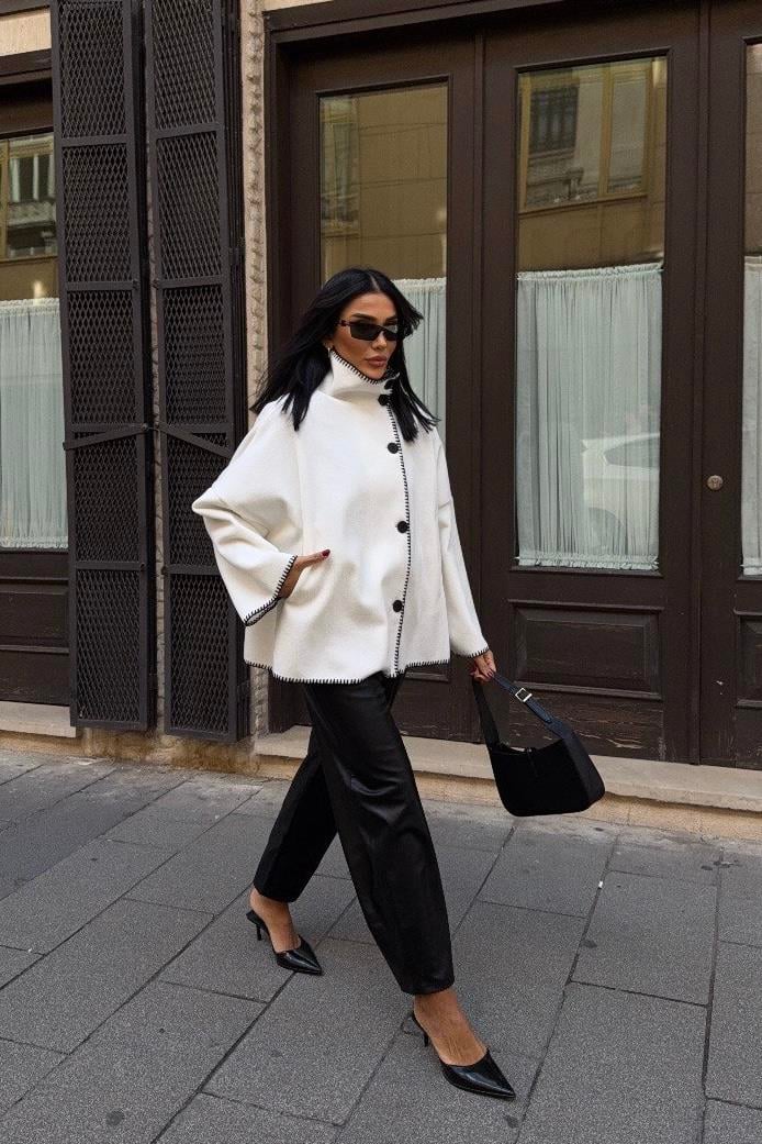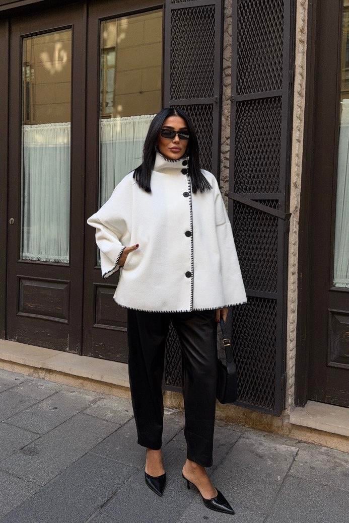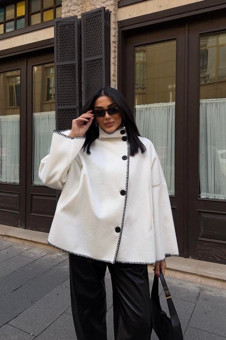 Yünlü Kadın Ceket - Beyaz (3M-3631)