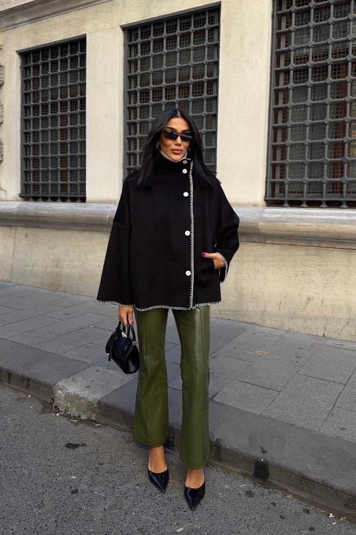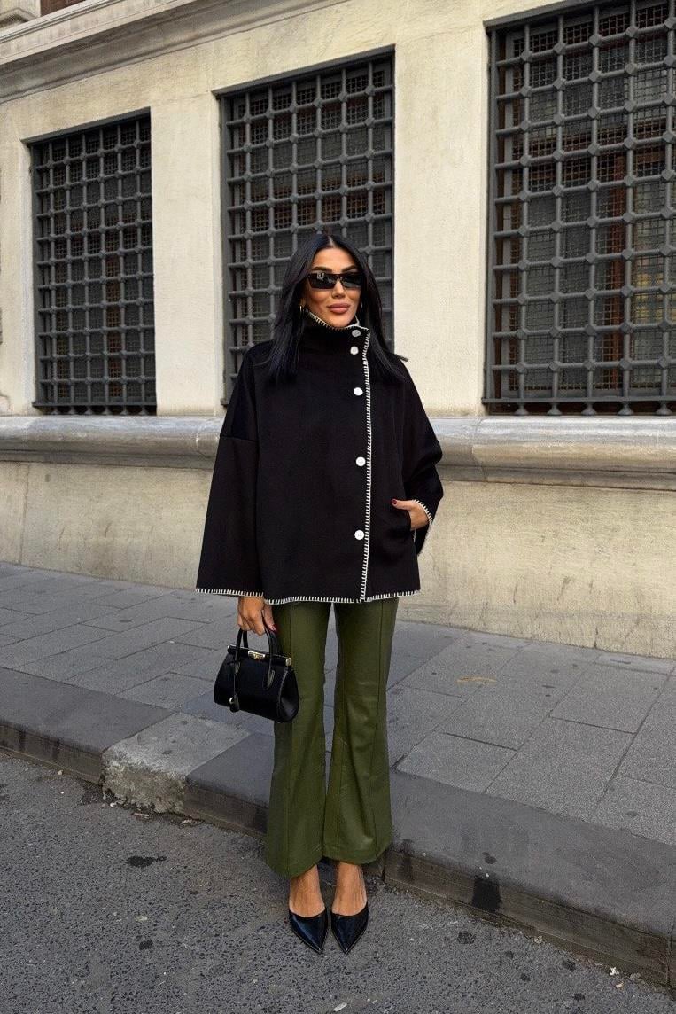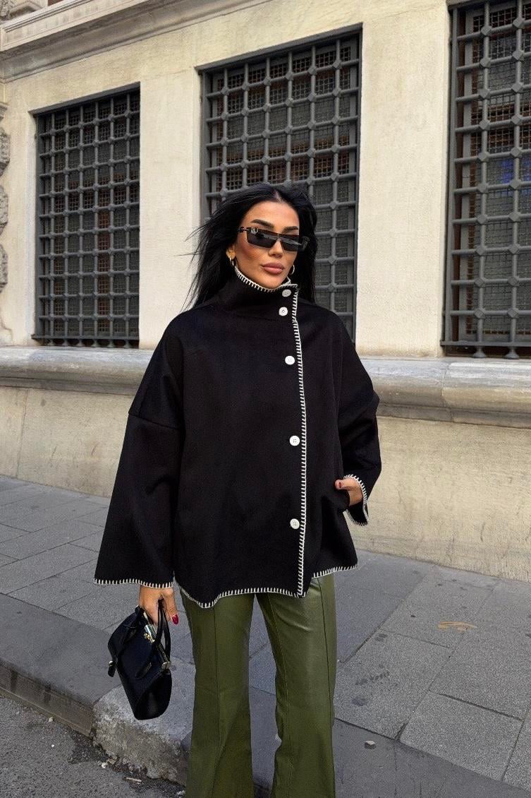 Yünlü Kadın Ceket - Siyah (3M-3631)